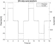 In the time-domain induced polarization method, the voltage response is observed as a function of time after the injected current is switched off or on. [4]