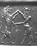 Some Indus seals seem to show possible Mesopotamian influence, as in the "Gilgamesh" motif of a man fighting two lions (2500-1500 BCE).[90][91][99]