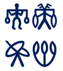 The characters are largely pictorial, depicting objects found in the ancient world generally, found locally in Harappan culture, or derived from the natural world.[39] However, many abstract signs have also been identified. Some signs are compounds of simpler pictorial signs, while others are not known to occur in isolation, being known only to occur as components of more complex signs.[39] Some signs resemble tally marks and are often interpreted as early numerals.[40][41][42]