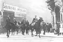 It is not entirely clear what was Don Jaime's rank when he arrived in Warsaw; Spanish press referred to him as "teniente",[110] Polish press referred to him as "chorąży".[111] There is no official Russian document available for consultation; the most likely rank was "Praporshchik" (прапорщик; equivalent to Ensign).[112] On 17 September 1900 he was formally promoted to the rank of "Poruchik" (поручик; equivalent to Lieutenant)[113] and at that rank he served until the end of his actual Warsaw assignment, though in 1904 he was promoted to the rank of "Kapitan" (капитан; equivalent to Captain)[114] and finally to "Polkovnik" (полковник; equivalent to Colonel). None of the sources consulted provides any information on don Jaime's function in the regiment and it is not known whether he served in regimental staff or with any of the squadrons.[115] In late 1902 the press reported that upon return from a just commencing 6-month leave, the following May don Jaime would intend to seek release from duty,[116] but in late summer 1903 he was still reported serving.[117] In October 1903 he was transferred from the Hussar Regiment to personal staff assigned to the Warsaw district commander.[118]
