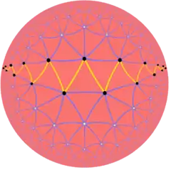 Hyperbolic infinite regular skew polygons also exist as Petrie polygons zig-zagging edge paths on all regular tilings of the hyperbolic plane. And again like in the Euclidean plane, hyperbolic infinite quasiregular skew polygons can be constructed as truncated Petrie polygons within the edges of all truncated regular tilings of the hyperbolic plane.