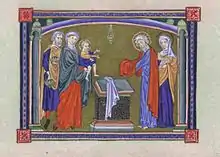 Ingeborg was married to Philip II Augustus of France on 14 August 1193,[2] after the death of Philip's first wife Isabelle of Hainaut (d. 1190). Her marriage brought a large dowry from her brother King Canute VI of Denmark.[3] Stephen of Tournai described her as "very kind, young of age but old of wisdom." On the day after his marriage to Ingeborg, King Philip changed his mind, wished to obtain a separation[4] and attempted to send her back to Denmark. Outraged, Ingeborg fled to a convent in Soissons, from where she protested to Pope Celestine III.[5]