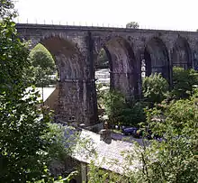 A section of the trackbed south of Kirkby Lonsdale was used by the re-aligned A65 road between Cowan Bridge and Ingleton. Several of the old stations have been adapted as private residences (e.g. Kirkby Lonsdale, Barbon and Sedbergh). Both stations at Ingleton have been demolished – the former LNWR depot is now a commercial unit while the ex-MR site is a car park and community/tourist information centre.[20] The three major viaducts at Ingleton, Sedbergh and Lowgill are now Grade II listed buildings as is the iron girder arched truss bridge over the River Rawthey near Sedbergh (which now carries a gas supply pipe).[20][21]