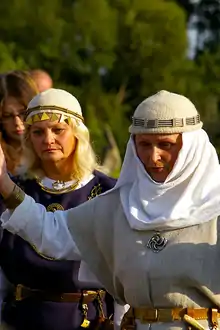 Inija Trinkūnienė (born October 25, 1951 in Kelmė) is a Lithuanian ethnologist, folklorist, sociologist, psychologist, head of folk music group Kūlgrinda and the high priestess (krivė) of the Romuva community of the old Lithuanian faith. She became the high priestess after the death of the previous high priest (krivis) and her husband Jonas Trinkūnas in 2014.[1] She is a founding member of the European Congress of Ethnic Religions.[2] She holds a master degree in psychology from Vilnius University.[2] She was a featured speaker in the Indigenous Plenary Session at the Parliament of the World Religions in Toronto in 2015.[3]