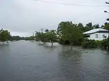 During the summer ‘cyclone season’, Innisfail is frequently under threat from tropical cyclones developing in the Coral Sea.[18] Furthermore, high rainfall associated with aforementioned cyclones and monsoons, combined with Innisfail settlement on adjoining rivers causes flooding to be commonplace, occurring to varied degrees of severity annually.[19]