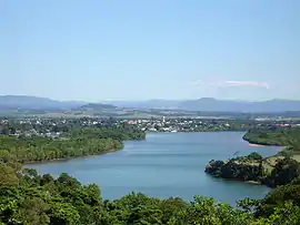 Innisfail's town centre is situated at the junction of the North and South Johnstone Rivers, approximately 5 km (3 mi) from the coast.[10] It is located near large tracts of old-growth tropical rainforest surrounded by vast areas of extensive farmlands. Queensland's highest mountain, Mount Bartle Frere; part of Australia's Great Dividing Range, is 15 kilometres (9 mi) to the north.[11]