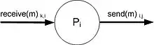 Intuitively, the action send(m)i,j indicates that a message m has entered the channel when it is sent by process Pi and the action receive(m)i,j indicates that a message m has left the channel when it is delivered to process Pj.[1]
