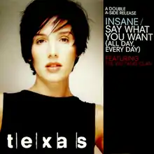- Insane / Say What You Want (All Day, Every Day) (UK CD1 liner notes). Texas. Mercury Records. 1998. MERCD 499, 568 597-2.