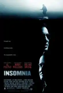 Insomnia is a 2002 American psychological thriller film directed by Christopher Nolan and written by Hillary Seitz. A remake of the 1997 Norwegian film of the same name, it stars Al Pacino, Robin Williams, and Hilary Swank with Maura Tierney, Martin Donovan, Nicky Katt, and Paul Dooley in supporting roles. The film follows two Los Angeles homicide detectives investigating a murder in Nightmute, Alaska.
