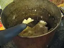 Instant mashed potatoes are potatoes that have been through an industrial process of cooking, mashing and dehydrating to yield a packaged convenience food that can be reconstituted by adding hot water or milk, producing an approximation of mashed potatoes. They are available in many different flavors.