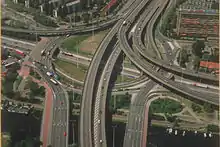 Complex roundabout interchange Kleinpolderplein in Rotterdam, the Netherlands. 51.931498°N 4.438479°E / 51.931498; 4.438479