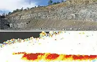 Terrestrial or ground-based SAR interferometry (GBInSAR or TInSAR) is a remote sensing technique for the displacement monitoring of slopes,[7] rock scarps, volcanoes, landslides, buildings, infrastructures etc. This technique is based on the same operational principles of the satellite SAR interferometry, but the synthetic aperture of the radar (SAR) is obtained by an antenna moving on a rail instead of a satellite moving around an orbit. SAR technique allows 2D radar image of the investigated scenario to be achieved, with a high range resolution (along the instrumental line of sight) and cross-range resolution (along the scan direction). Two antennas respectively emit and receive microwave signals and, by calculating the phase difference between two measurements taken in two different times, it is possible to compute the displacement of all the pixels of the SAR image. The accuracy in the displacement measurement is of the same order of magnitude as the EM wavelength and depends also on the specific local and atmospheric conditions.