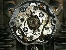 The fuel mixture is ignited at difference progressions of the piston in the cylinder. At low rpm, the spark is timed to occur close to the piston achieving top dead center. In order to produce more power, as rpm rises the spark is advanced sooner during piston movement. The spark occurs while the fuel is still being compressed progressively more as rpm rises.[37]