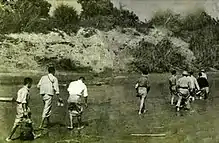 In 1940, during World War II, a group of young Burmese intellectuals left for Japan to receive military training in preparation for an anti-colonial struggle against the British.[8] This group came to be known as the Thirty Comrades, and upon returning to Burma in 1941 they established the Burma Independence Army (BIA) to fight against the Allies.[8][9] Upon their capture of Rangoon in 1942, the Japanese established a puppet state, the State of Burma, and reorganised the BIA as its armed forces, the Burma National Army (BNA).[10] Aung San, the leader of the State of Burma and one of the Thirty Comrades, became increasingly sceptical of Japan's ability to win the war as time progressed, and in mid-1944 he decided to switch sides.[11] Japanese forces capitulated by July 1945, and the British began to negotiate Burma's independence with Aung San and other prominent Burmese leaders.[12]