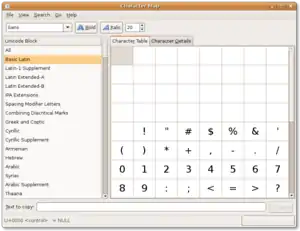 Equivalent tools – such as gucharmap (GNOME) or kcharselect (KDE) – exist on most Linux desktop environments.