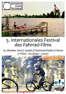 The International Cycling Film Festival (Polish: Międzynarodowy Festiwal Filmów Rowerowych, German: Internationales Festival des Fahrrad-Films) is an independent, not-for-profit film festival held annually in Germany, in Poland, in Kosovo and in the Netherlands. Its mission is to strengthen international cooperation in the areas of art film and bicycle culture. The festival promotes interaction between movie makers and cyclists from all over the world. It has screened more than 350 short movies from more than 30 countries since its debut in 2006. Each year around 20 films compete for the award Goldene Kurbel and the awards of the audience. The Neistat Brothers, Michaël Dudok de Wit, Lucas Brunelle, Steven Subotnick, Nash Edgerton, M. A. Numminen and other filmmakers and artists contributed to the ICFF.