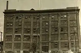 In 1917, the original International Hat headquarters was located at 711 Lucas Avenue.[6] From 1917 to 1928, the factory manufactured straw harvest hats.[6] By the 1920s, the company was the largest manufacturer of harvest hats in the world from this facility.[6] In 1928, the company purchased 2528 Texas Avenue from Koken Barbers' Supply Company and sold the original factory at 711 Lucas to Koken as part of the deal.[6] The Texas location would continue manufacturing straw harvest hats, as well as all military sun helmets produced during and after World War II.[3] This five-story building included 87,000 square feet, or approximately two acres.[64][65] In 2016, this facility was purchased by two non-profit organizations, DeSales Community Development and St. Louis Makes to form a new joint private non-profit organization called Brick City Makes.[66][67] The Brick City Makes hub is noted as being the first non-profit organization in the United States to renovate an industrial building in order to provide rent space and development, as a business incubator, for entrepreneurial manufacturers.[65][66] The Brick City Makes business incubator, at the former International Hat factory, is the first model in the US to focus on business support services that grow the expertise and profitability of manufacturers and inventors until their organizations are large enough to exit the incubator and launch independently elsewhere.[66][68]