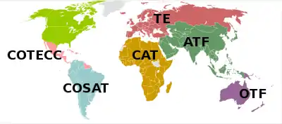 Regional associations were created in July 1975 as six "supra-national associations" (Europe, Asia, Africa, North America, South America, and Australia) with the aim to decrease the gap between the ILTF and the national associations. These evolved into the current regional associations:[13]