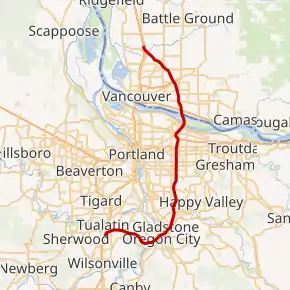 ![]() Map of the Portland area with I-205 highlighted in red | |||||||