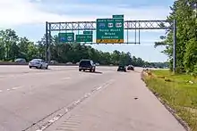 The original I-440 designation used "inner" and "outer" labels rather than east and west labels because the freeway made a full loop around the city. "Inner" was used to designate the clockwise direction around the beltline, and "outer" was used to designate counterclockwise.[32] In 2008, State Highway Administrator W. F. Rosser asked the US Department of Transportation to remove the I-440 designation from the southern portion of the beltline, where it was cosigned with I-40. This decision was primarily made to prevent confusion of travelers who used the highway. On November 10, 2008, I-440 was officially truncated on the western end at the I-40/US 1/US 64 interchange in western Raleigh and at the I-40 interchange in southeast Raleigh. The inner and outer labels were also dropped and replaced with east and west designations.[33][34] The Federal Highway Administration route log has been updated to show the shortened distance.[1] By 2010, the entirety of the highway's signs had been changed to the new designation.[35]