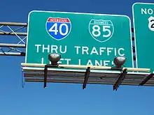 In May 2005, I-85 was redirected southeast around Greensboro along the Greensboro Urban Loop; its old routing through Greensboro became an extension of Business 85, extending it from 29.8 miles (48.0 km) to 43 miles (69 km).[7][8] The extension included a hidden two-mile (3.2 km) concurrency along I-85 (between exits 118-120A) before splitting off again with US 29 and US 70. In merging onto I-40 (exit 219), it continued easterly before meeting back with I-85 (exit 227) near McLeansville. For a brief period in 2008, I-40 was also decommissioned through Greensboro and rerouted around the Urban Loop, with its old routing replaced by Business 40, but its former in-town route was eventually restored, resulting once again in a regular and Business Interstate sharing the same alignment. In October 2018, Business 85 was reverted to its original 29.8-mile (48.0 km) alignment, ending near Jamestown. The justification was to eliminate a redundant route and decrease the number of routing shields and overhead signs through Greensboro.[9][10]