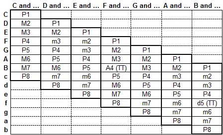 Main intervals from C