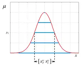 For fuzzy arithmetic[8] only a finite number of discrete affiliation stages are considered. The form of such a distribution for an indistinct value can then represented by a sequence of intervals