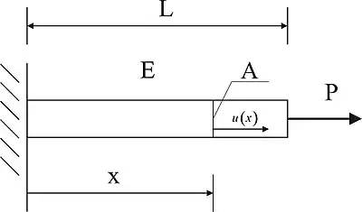 In the tension-compression problem, the following equation shows the relationship between displacement u and force P:
