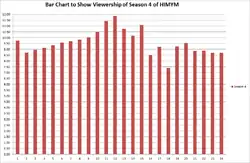 This season is currently the second highest rated season of How I Met Your Mother in terms of viewership, at an average of 9.42 million viewers.[28] However, it is currently the highest rated in terms of the important Adults 18-49 demographic, which is what advertisers use to determine how much a 30-second advertising spot costs. Season 4 averaged 4.0/10 in terms of rating/share in the Adults 18-49 demographic.