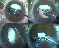 The technique can be use for intraoperative nucleus removal during cataract surgery (phacoemulsification), removal of lens dropped on the retina, Sommering ring removal, Intraocular foreign body removal, and IOL explantation.[4][5][6][7][8][9]