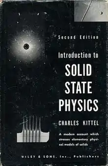 Introduction to Solid State Physics, known colloquially as Kittel, is a classic condensed matter physics textbook written by American physicist Charles Kittel in 1953.[1] The book has been highly influential and has seen widespread adoption; Marvin L. Cohen remarked in 2019 that Kittel's content choices in the original edition played a large role in defining the field of solid-state physics.[2] It was also the first proper textbook covering this new field of physics.[3] The book is published by John Wiley and Sons and, as of 2018, it is in its ninth edition and has been reprinted many times as well as translated into over a dozen languages, including Chinese, French, German, Hungarian, Indonesian, Italian, Japanese, Korean, Malay, Romanian, Russian, Spanish, and Turkish. In some later editions, the eighteenth chapter, titled Nanostructures, was written by Paul McEuen. Along with its rival Ashcroft and Mermin, the book is considered a standard textbook in condensed matter physics.
