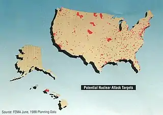 During the Cold War, the primary threat of an attack on the United States was viewed to be from the Soviet Union. In such an attack, nuclear warfare was projected to almost certainly happen, mainly in the form of intercontinental ballistic missile attacks as well as Soviet Navy launches of SLBMs at US coastal cities.[17]
