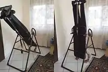 Inversion therapy, or simply inversion, is the process of seeking therapeutic benefits from hanging by the legs, ankles, or feet in an inverted angle or entirely upside down. It is a form of spinal traction.[1] Gravity boots are ankle supports designed for inversion therapy.[2] Some people use gravity boots to add an extra challenge to workouts, doing inverted crunches or squats.[3]