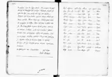 Correspondence of Ioannis Vilaras, in Albanian, with original alphabet. Signed by Vilaras, Vokopolje, 1801 Source: Bibliothèque nationale de France. Département des manuscrits. Under the name: Supplément grec 251 (p. 222-223)