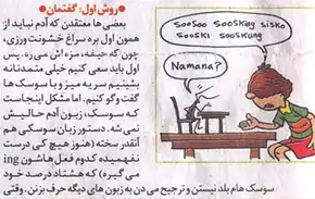 The child proceeds to speak in "cockroach language" to the cockroach, but the cockroach does not understand him and replies "Namana?" ("What?"). Namana is originally an Azerbaijani-Turkic word, but is also sometimes used in Persian as a slang. In other sections of the article where the violence option is entertained, the cockroach speaks in Persian to the child.