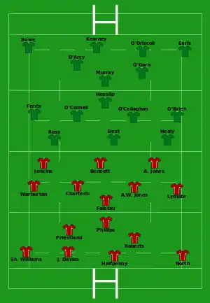 | Try: Ja. Ryan 6' c Best 14' m Furlong 25' c Conway 56' m Con: Sexton (1/2) 8' Murray (1/2) 27' Pen: Carty (1/1) 68' |