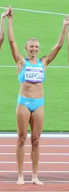 Irina Vladimirovna Karpova (née Naumenko, Kazakh: Ирина Владимировна Науменко; born 13 February 1980 in Kamenogorsk, East Kazakhstan Region) is a Kazakhstani heptathlete.