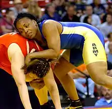 Iris Smith (born October 15, 1979) is an American freestyle wrestler who won the 2005 world title in the 72 kg division. A daughter of Brent James and Betty Smith, she Attended Dougherty Comprehensive High School in Albany, Georgia, where she played basketball and served as student council president. Smith has three brothers, Dominique, Kenderson and Westley, and four sisters, Cheavelia, Tyuana, Nicole, and Sasha. She holds a rank of Staff Sergeant in the U.S. Army. She missed the 2001 World Championships because it overlapped with her military training program.[1]