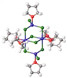 - Cotton, F. A.; Luck, R. L.; Son, K.-A. (1991). "New polynuclear compounds of iron(II) chloride with oxygen donor ligands Part I. Fe4Cl8(THF)6: synthesis and a single crystal X-ray structure determination". Inorganica Chimica Acta. 179: 11–15. doi:10.1016/S0020-1693(00)85366-9.