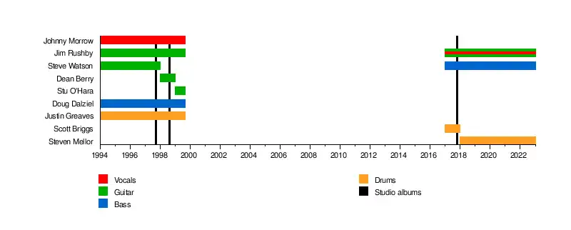 - Jim Rushby – guitar (1994–1999, 2017–present), vocals (2017–present)