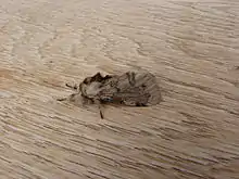 The wingspan is about 30 mm for males while females are wingless. Males have a pattern of light and dark brown markings on the forewings and plain brown hindwings.
