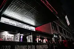 Ron Delsener took on management in the early 1990s. Live Nation, a spinoff of Clear Channel Communications, renovated and reopened Irving Plaza under the name "Fillmore New York At Irving Plaza" on April 11, 2007, reviving the name of the former Fillmore East in Manhattan's East Village, which had been open from 1968 to 1971.[14] However, in May 2010 Live Nation conceded that the new name had not caught on and due to "unrelenting demand" the name "Irving Plaza" would be restored as from June 23, 2010. A replica of the original marquee has been commissioned.[15]