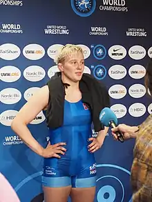 ![]() Iselin Moen Solheim at the 2021 World Wrestling Championships in Oslo, Norway | ||||||||||||||||||||||||||