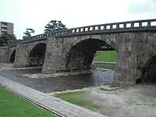 Ishibashi Park (石橋記念公園, Ishibashi Kinen Kōen) is a park in Hama-machi, Kagoshima, Japan.[1] At the end of the Edo period (late 19th century), local lord Shimazu Shigehide had five bridges, collectively called the Gosekkyō ("five stone bridges"), built across the Kōtsuki River. Two of them collapsed in floods in 1993. The remaining three were moved to a new location and restored. Ishibashi Park consists of these three bridges and a museum.
