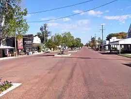 The first European in the area was the explorer Thomas Mitchell, who travelled through the area in 1846. Settlers followed with James Whitman opening a hotel, store and blacksmith by May 1875.[24] The town was surveyed as the Town of Wittown in April 1878; it is said that Whitman named it after himself.[25] However, in May 1878, the name Isisford was proposed and by August 1878 it had been renamed Isisford, because it was near the Isis Downs pastoral run and a ford on the Barcoo River.[26][27][28][29]