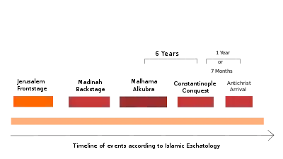 - The truce and joint Roman-Muslim campaign against a common enemy, followed by Al-Malhama Al-Kubra (Armageddon), a Roman vs. Muslim war.[note 46]