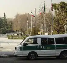 Guidance Patrol (Persian: گشت ارشاد,'[14] Gašt-e Eršād) is the main Islamic religious police, or vice squad in the Law Enforcement Force of Islamic Republic of Iran. It was established in 2005, succeeding previously defunct institutions of similar nature.[16] Its mission is to impose Islamic dress codes and norms of conduct in public, particularity regarding the hijab of women (but also some men)[17] who are deemed improperly dressed according to the dress code. In addition, the patrol also enforces Islamic codes of conduct in public, such as preventing the mingling of unrelated men and women without a male guardian (mahram) for the latter, and preventing other types of behavior that are un-Islamic. It has been viewed as a scourge by urban women, particular those from more affluent circles, who try to push the boundaries of dress code. President Hassan Rouhani has expressed opposition to the Guidance Patrol, but it does not fall under his constitutional jurisdiction.[14]