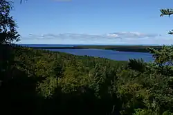 Isle Royale, the largest island in Lake Superior, is over 45 mi (72 km) in length and 9 mi (14 km) wide at its widest point.[6] The park is made up of Isle Royale itself and approximately 400 smaller islands, along with any submerged lands within 4.5 mi (7.2 km) of the surrounding islands (16USC408g).[7]