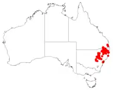 Isopogon petiolaris mostly grows in stony places in forest and heath from the Darling Downs in south-eastern Queensland and south through the Northern Tablelands to near Parramatta and west to the Pilliga forest and Parkes.[2][3]