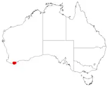 Albany cone bush grows in stunted jarrah scrub in swampy depression and on hillslopes near Albany where it is only known from nine small populations.[2][3][4][8]
